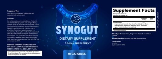 SynoGut is a natural dietary supplement designed to support digestive health. It helps alleviate common digestive issues like constipation, bloating, and irregular bowel movements. SynoGut promotes gut detoxification and supports a balanced gut microbiome, which is essential for proper digestion and overall health. It combines natural fibers, detoxifying agents, and probiotics to improve digestive function and ease discomfort.